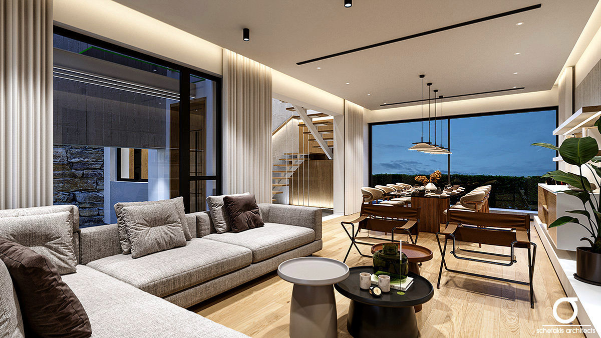 In the picturesque neighborhood of Perivolia, Chania, a stunning interior design project has transformed a detached house into a luminous haven. Emphasizing a minimal aesthetic, the design capitalizes on the home's expansive windows, flooding the space with natural light.